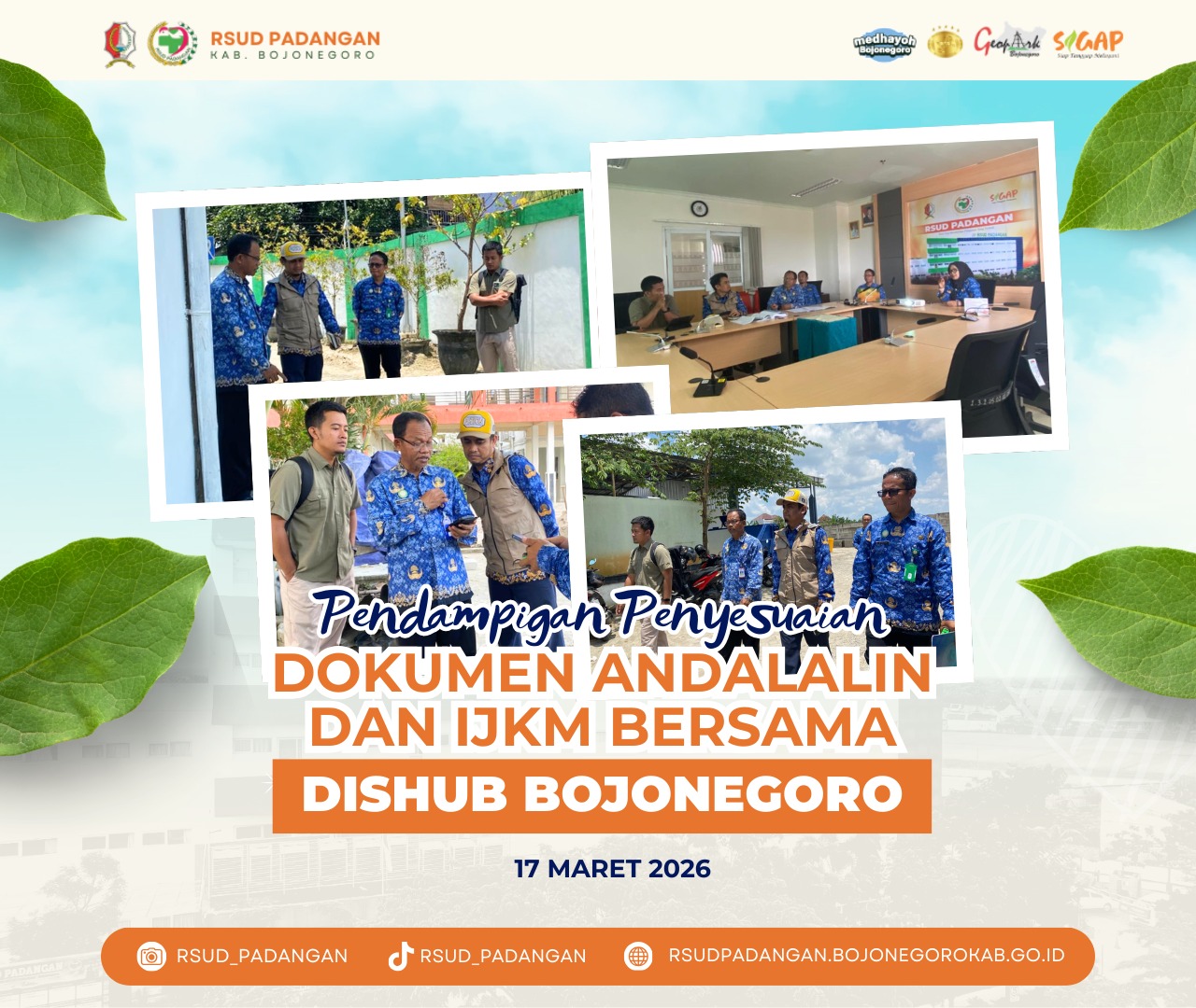 Kegiatan pendampingan penyesuaian dokumen ANDALALIN dan IJKM RSUD Padangan bersama Dinas Perhubungan Bojonegoro telah dilaksanakan sebagai bagian dari kesesuaian perencanaan teknis dengan regulasi yang berlaku. Melalui koordinasi dan diskusi yang konstruktif, diharapkan dokumen yang disusun dapat mendukung kelancaran lalu lintas serta meningkatkan keselamatan dan kenyamanan bagi pengguna jalan. Kolaborasi ini menjadi langkah penting dalam mewujudkan tata kelola transportasi yang lebih tertib, terencana, dan berkelanjutan di Kabupaten Bojonegoro.